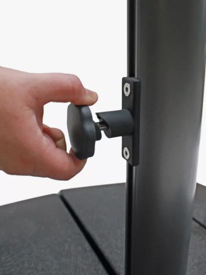 - With 360° free arm rotation and vertically adjustable tilt, the parasol can be raised or lowered without moving the base.
